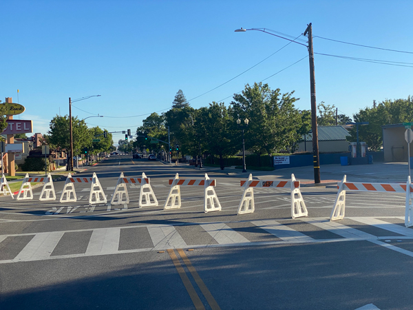 Barricade at Spring and 9th streets in downtown Paso Robles.