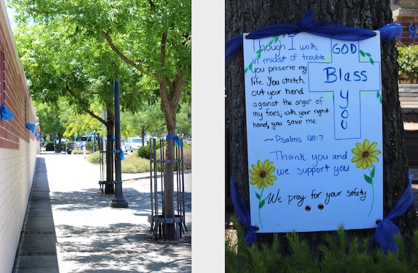 –The Paso Robles community showed support and gratitude for local law enforcement after this week’s tense active shooter situation by decorating the town and police station with blue ribbons and signs.