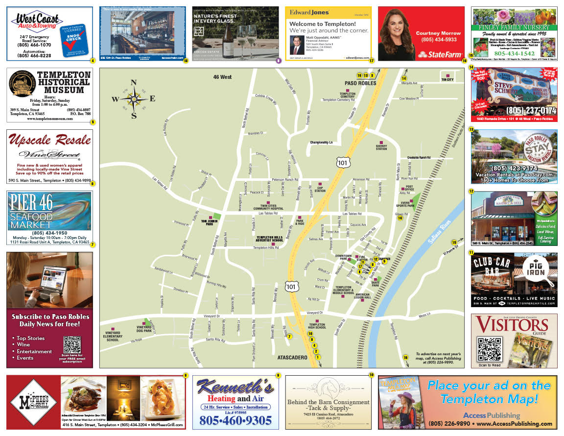 For information on advertising on the Templeton Map, call (805) 226-9890 or email beth@accesspublishing.com