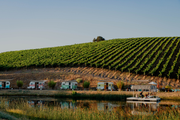 The Trailer Pond, located on the winery’s organically farmed estate at 2825 Adelaida Road, features five restored vintage trailers arranged around a pond.