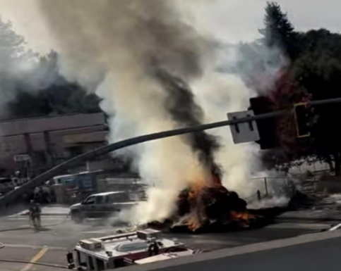 Firefighters engaged in suppression efforts to contain the blaze, successfully limiting the fire to the trailer and preventing its spread to the vehicle. Some flames had reached nearby vegetation, but fire personnel quickly contained the spread. The operation took approximately one hour to complete, with assistance from the City’s backhoe to fully extinguish the remaining hay.