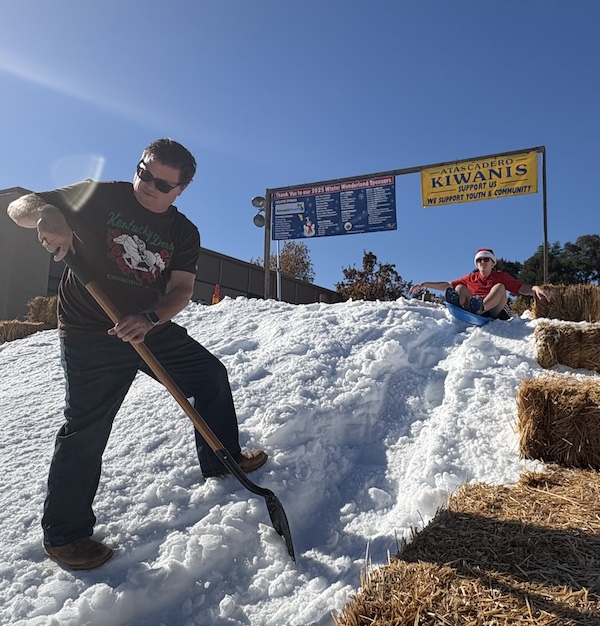 Kiwanis, Cuesta Springs Ice, and Atascadero Hay and Feed built the huge snow slide on Friday morning and afternoon.