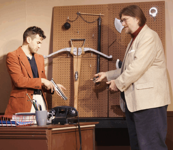 Photo caption: “Deathtrap” cast from left: Jonah Duhe, Kira Dobson. Photo credit: Janice Peters.