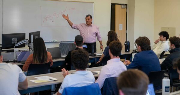 Cyrus Ramezani, chair of the Finance concentration, leads a class.