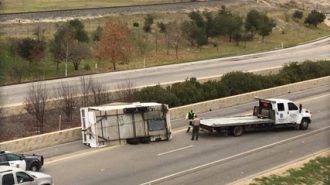 Trailer flips over on Highway 101 near Niblick bridge