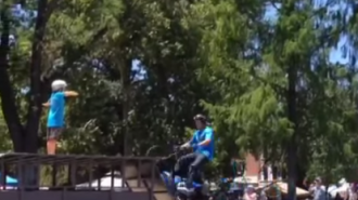 Watch: Professional BMX riders showcase tricks at kids bike rodeo