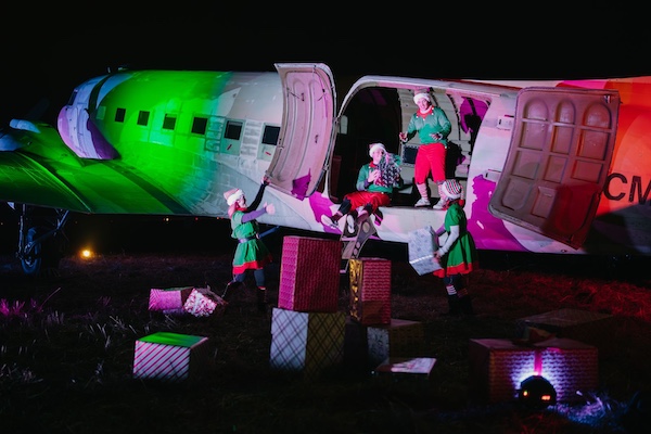 The two-mile train ride features illuminated holiday displays, such as elves unloading gifts from a vintage C47 airplane and an all-new North Pole Village. The ride concludes at Santa’s Village, where visitors can enjoy carolers, Santa visits, a magic show, dinner and snack vendors, painting activities, face painting, games, fire-roasted s’mores, pony rides, and holiday cocktails.