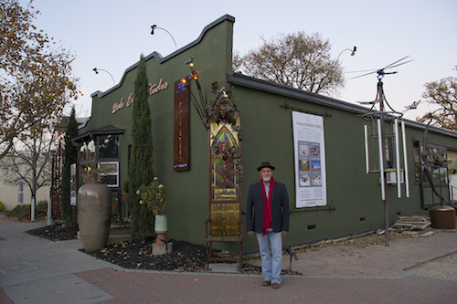 The studio is well known for its eclectic and large art pieces on display outside of the studio, such as the guitar gates, wind chimes, and Mega Focus, which is a piece of a spirit man holding a bow and arrow. New creations are often displayed in front of the studio.