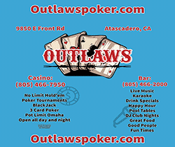 Welcome to Outlaws Bar, Grill & Casino. Whether you’re here to dine, drink or play we have something for you. As a local landmark located right off of highway 101, Outlaws Bar, Grill & Casino is know for the classic American feel with a touch of west. We are founded on the beliefs that everyone deserves to have great food at a reasonable rate. So come in on for a delicious steak, maybe a cold beer or try your luck a game of cards at the only card parlor in town.