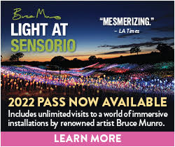 Light at Sensorio features two walk-through installations by acclaimed artist Bruce Munro. The 15 acre Field of Light. comprised of more than 58,800 stemmed spheres & Light Towers celebrating Paso Robles’ wine country, composed of more than 17,000 wine bottles, both illuminated by glowing optic fibers. 4380 HWY 46 East, Paso Robles, sensoriopaso.com, (805) 226-4287