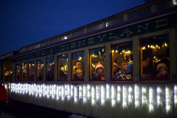 Christmas at the Ranch attendees enter the event on one of two authentic steam engine locomotives, one with classic open-air cars and one that pulls three original Disney train cars used in the first years that the theme park opened its doors.