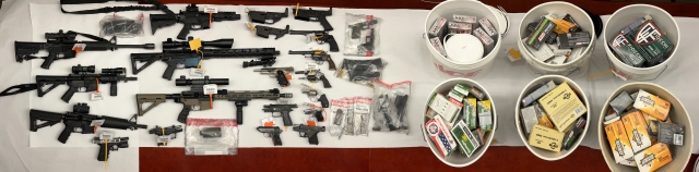 Felon arrested for possession of 24 firearms, ammo, explosive device