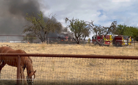 The fire took about four hours to extinguish. Horses were reportedly able to move away safely, but one unidentified person assisting at the scene sustained minor injuries.