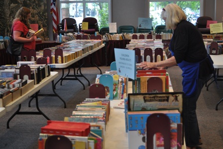 After Thursday’s special early access for Friends of the Library members, there has been a steady stream of community members and out of town visitors stopping by to stock up on hardcover and paper back books in a variety of genres – romance, suspense, mystery, western, biography, history, other fiction and non-fiction. Also available are children’s books, collector sets, cookbooks, DVDs, books on CD, as well as books on tape and VHS at bargain prices; buyers pay no sales tax.