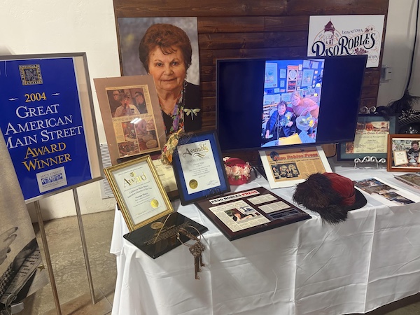 Chad Stevens and Bobby Horn served as Masters of Ceremonies of the event. A number of local citizens spoke, including Jeffry Wiesenger, the Interim Executive Director of Paso Robles Main Street. Daughter Patti Baldwin and son Vince Vanderip also spoke about their mother, the “Queen of Paso Robles.”