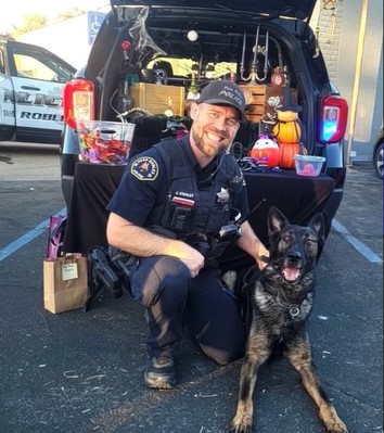 Renzo joined the Paso Robles Police Department K-9 Unit in 2020, partnering with Officer Joe Stanley. Together, they provided support and protection for the citizens of Paso Robles and the officers they worked alongside. Their energy and enthusiasm brought smiles to the community during various K-9 demonstrations at local events.