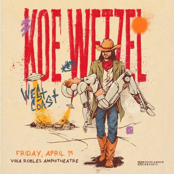 – Gold-selling singer, songwriter, guitarist and producer Koe Wetzel will bring his unique sound to the Vina Robles Amphitheatre stage in Paso Robles, Friday, April 19. He will be joined by special guest Tanner Usrey.