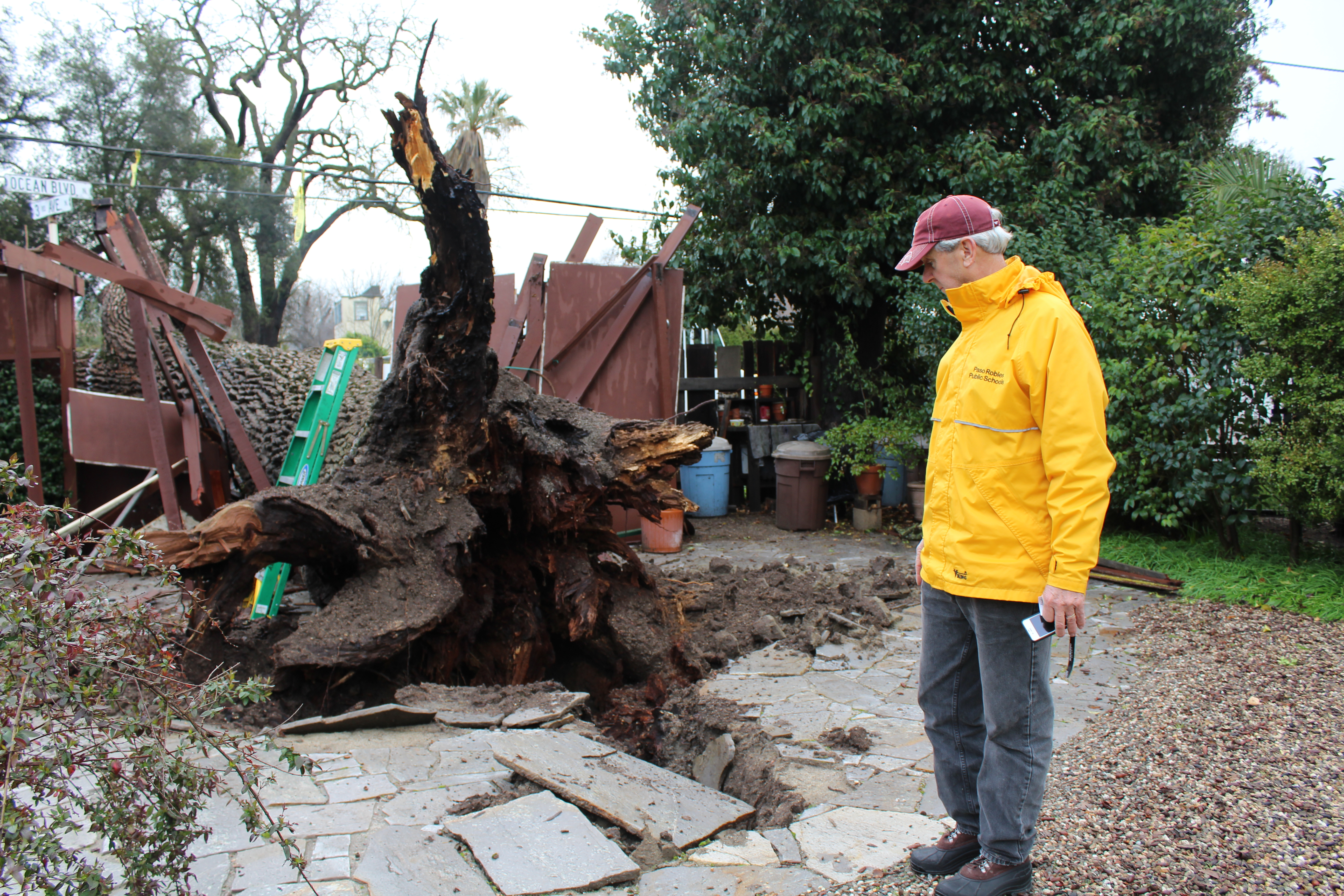 Paso Robles resident Jeff Penick with the tree that fell over in his back yard.