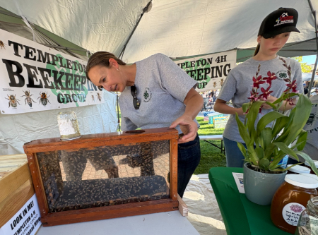 Templeton 4-H members sold honey and showed interested members of the public a transparent bee hive. The queen was marked with blue paint, so people could watch her wiggle behind the glass.