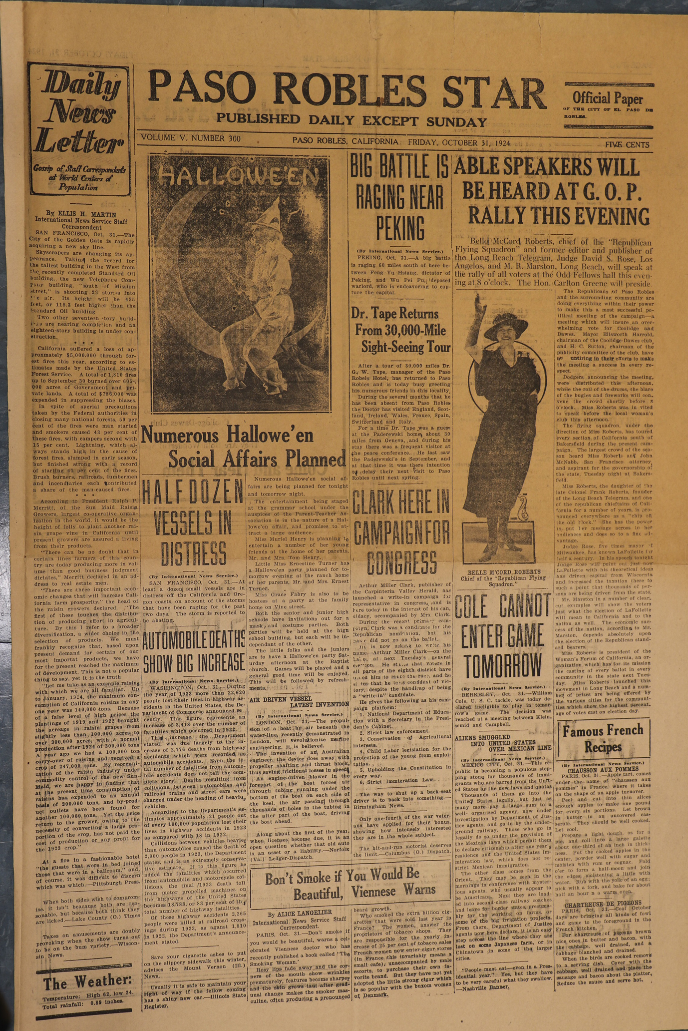 Excerpt from the Paso Robles Star, Friday, October 31, 1924.