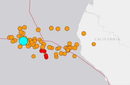 The earthquake, recorded at 10:47 a.m., initially measured a magnitude of 6.6, but the U.S. Geological Survey revised the figure shortly after. The epicenter was located about 39 miles west of Petrolia, southwest of Eureka. A number of smaller earthquakes were recorded in the same area around the same time according to the USGS latest earthquake map.