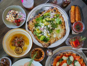 “This is a locals’ joint! It’s a fun place to meet friends because you can relax in booths while catching up and passing great food around the table,” said Cameron. “[Eric and I] both love woodfired pizza! We saw a demand for more dining options in Paso Robles and thought that a simple, ingredient-focused pizza and cocktail joint would augment our existing restaurant scene. [Bidwell], who also helms our other restaurant The Hatch Rotisserie & Bar, was excited about this concept as well and really dug into the research and development aspect of the project while leaning on his past experience making woodfired pizza.”