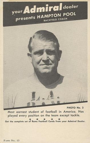 Hampton Pool was a football player, coach and scout who was part of two National Football League championship teams during his playing career and served as head coach for three professional teams. We was born in San Miguel in 1915 and went to Paso Robles High School.