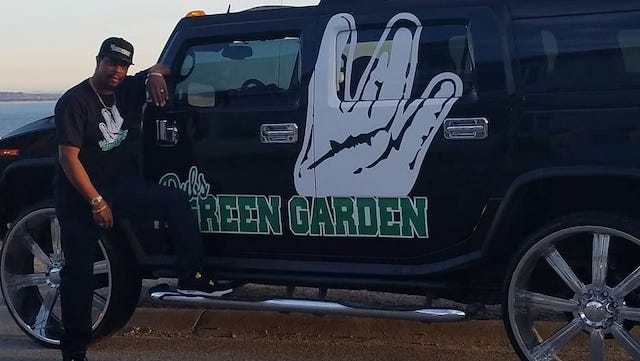Ernest “Dubs” Hall, owner of Dubs Green Garden Collective with one of the delivery vehicles.