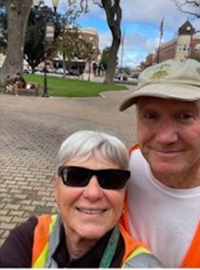 Volunteers Diane and Mike Coleman in the downtown city park.