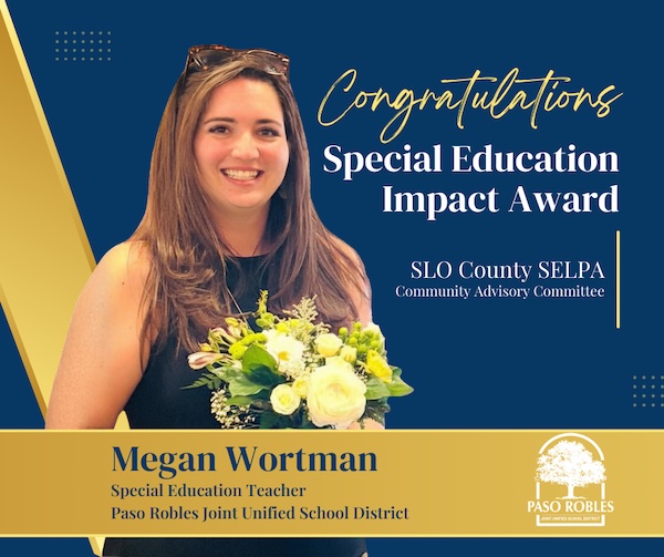 – The San Luis Obispo County Special Education Local Plan Area (SELPA), in partnership with its Community Advisory Committee (CAC), has named Megan Wortman, a special education elementary teacher with Paso Robles Joint Unified School District (PRJUSD), as the recipient of the 2026 Special Education Impact Award in the Elementary Teacher category.