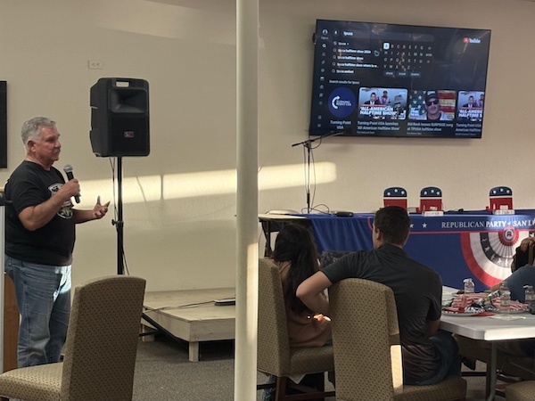 – About 50 football fans gathered at the Republican Party of San Luis Obispo County headquarters in Atascadero Sunday to watch Super Bowl LX, choosing to view an alternative halftime show rather than NBC’s broadcast.