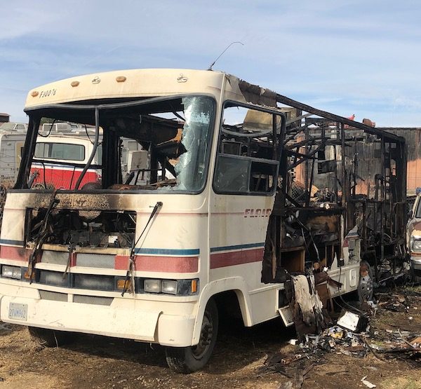 Atascadero Firefighters were attending an exercise with PG&E staffers when the alarm sounded. Two engines quickly arrived at the storage yard behind industrial buildings on Via Avenue off Traffic Way. Because there was no fire hydrant nearby, they used the water from their trucks. They had to extend hoses 500 feet from the engines to reach the RV fire.