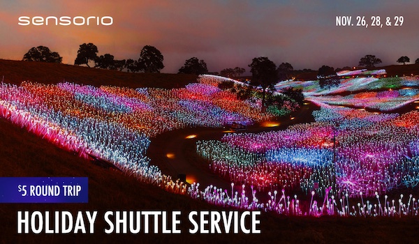 Bring friends and family to enjoy the magic of Sensorio this Thanksgiving season. The shuttle makes it easy and affordable for everyone to enjoy the experience without the hassle of parking. Come illuminate your holiday plans with Sensorio this week.