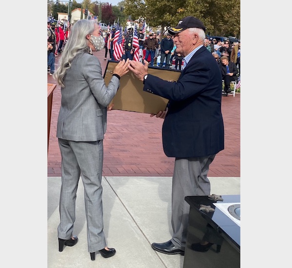 Mayor Heather Moreno honored two distinguished veterans; former Atascadero Mayor Ray Johnson; and retired Lt. Colonel Al Fonzi, the husband of Atascadero City Council Member Robeta Fonzi. Each honoree spoke briefly about their own military experiences.