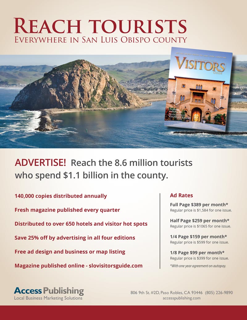 –The San Luis Obispo County Visitors Guide is ready to safely welcome people back to visit local businesses that rely on tourism. Access Publishing is planning its Fall/Winter edition of the travel magazine now for a Nov. 15 publication date.