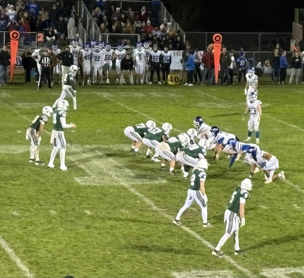 Immanuel dominated the first half with its size and aggressive offense. Their line is led by 6’7″, 360-pound Tipi Aloua. Six other Immanuel players weigh over 245 pounds. A fake punt by Immanuel created one scoring opportunity. They led 21-0 at the end of the first quarter.
