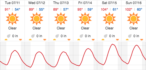 –Triple digit temperatures are expected to return again after this weekend, according to Weather Underground. Later this week, temperatures could dip as low as the upper 80s, but by Saturday, the weather is expected to breach 100-degrees again.