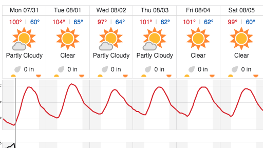 –Temperatures could get as hot as 104-degrees by Tuesday, according to Weather Underground. They are predicting temperatures in the high 90s and into triple digits all this week.