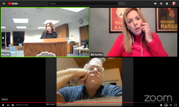 Unfortunately, the audio on the teleconference was so bad that many of the trustees were unintelligible. It was easy to understand Superintendent Curt Dubost, Trustee Tim Gearhart, Trustee Nathan Williams, Trustee Jim Reed, and Assistant Superintendent Jennifer Gaviola, but many of the other trustees were unintelligible.
