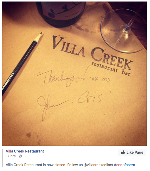 Villa Creek Restaurant closes it’s doors